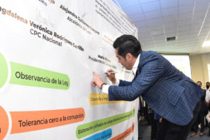 Añadió que para formar una sólida cultura en favor de la integridad y la ética en el quehacer de los negocios; “ustedes están trabajando en: Involucrar a la comunidad estudiantil, como los futuros profesionistas y cabezas de empresa”.